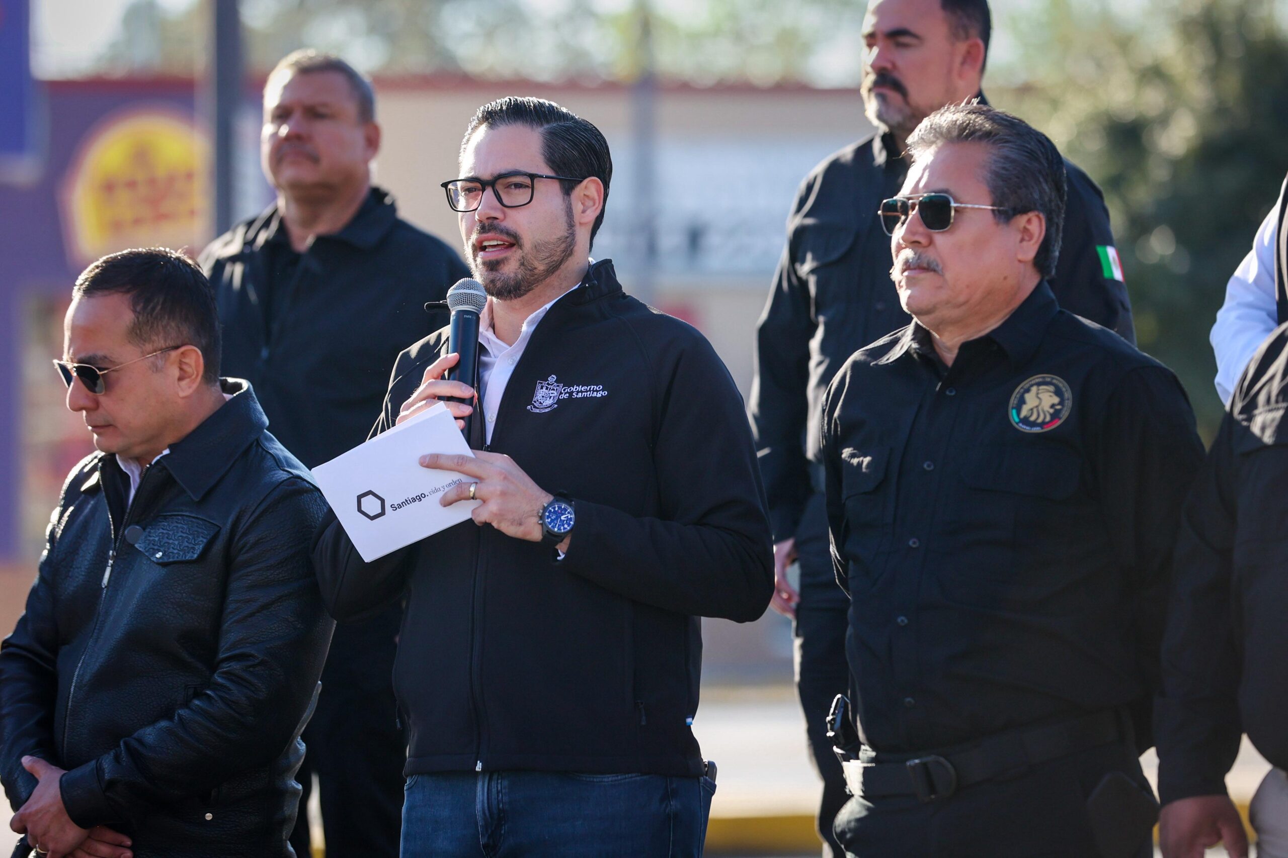 “Hoy arrancamos el operativo del Buen Fin, del día 13 al 16 de noviembre estaremos con más de 90 elementos en la calle, con tres torres de vigilancia, más de 20 patrullas, Unidades de Vigilancia Inteligente, dos vehículos blindados tipo RAM, la Black Mamba, así como todo el personal desplegado a lo largo y ancho del municipio de Santiago, cuidando el área de bancos, cuidando todos los centros de comercio que existen en el municipio de Santiago”, explicó el Alcalde.
