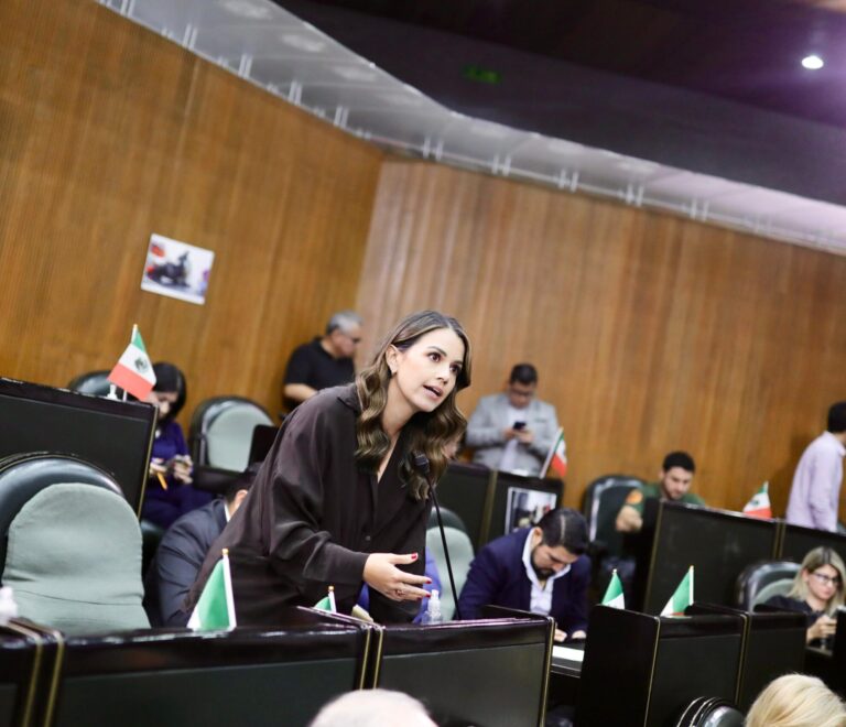 Durante la sesión del Congreso, la diputada Lorena de la Garza felicitó y reconoció a María...