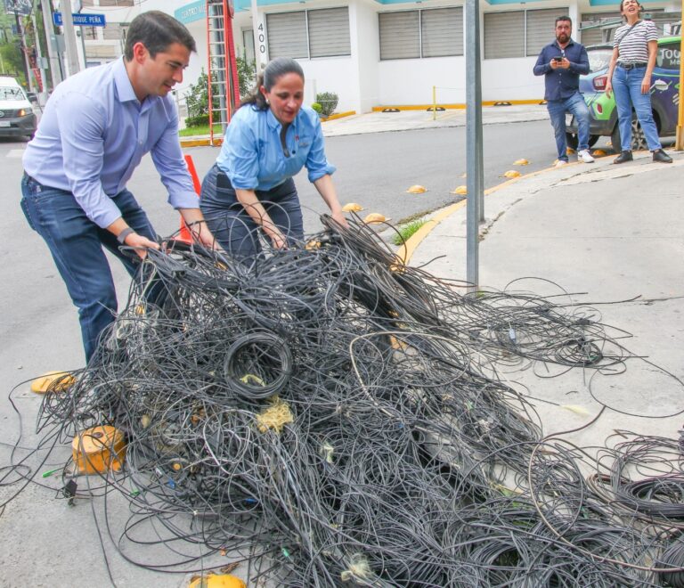 En conjunto con media docena de empresas, el municipio de Monterrey retiró cables en desuso en...