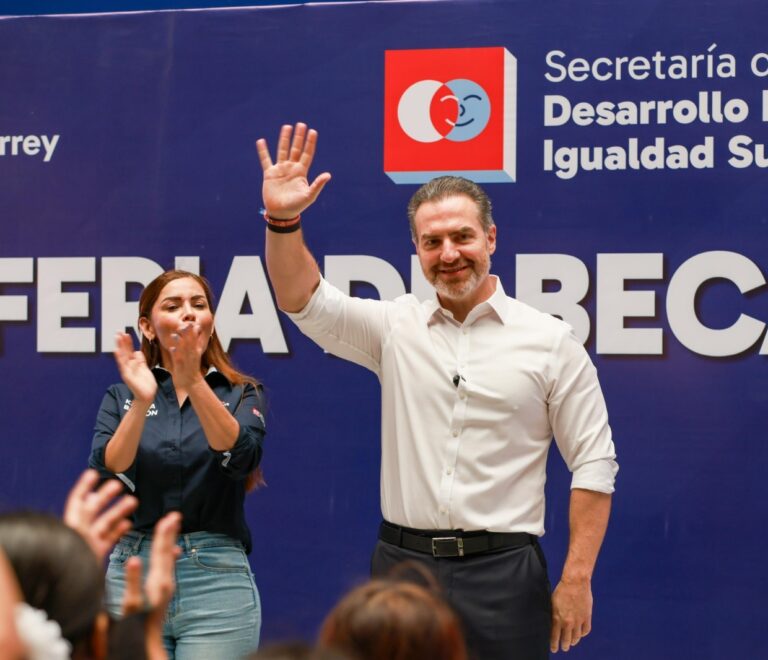 • El alcalde Adrián de la Garza recorre junto con cientos de jóvenes los módulos de...