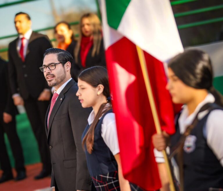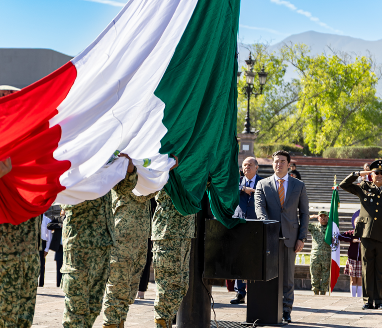 Al encabezar la ceremonia cívica del Día de la Bandera, el Gobernador, Samuel Alejandro García Sepúlveda...