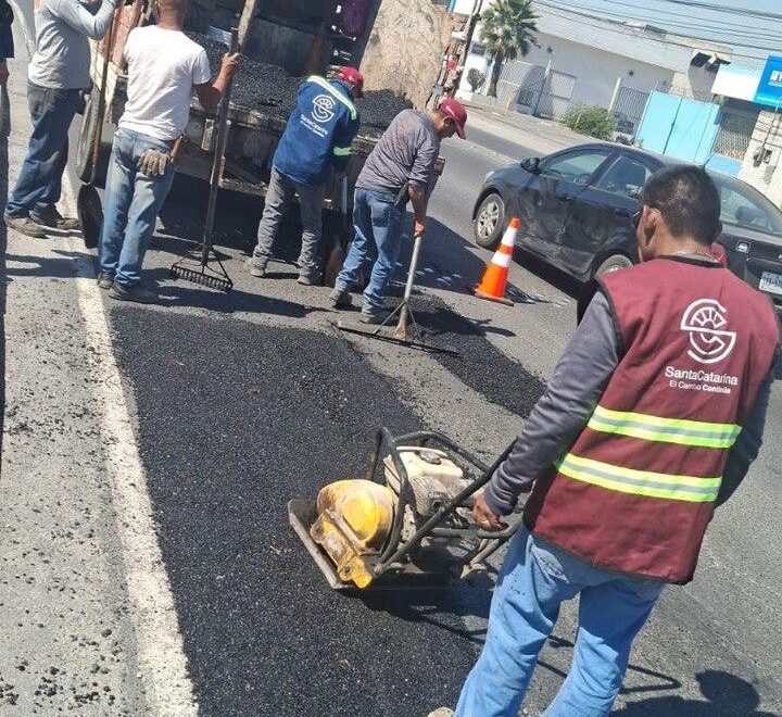 El Gobierno de Santa Catarina continúa realizando labores bacheo para que las avenidas y calles se...
