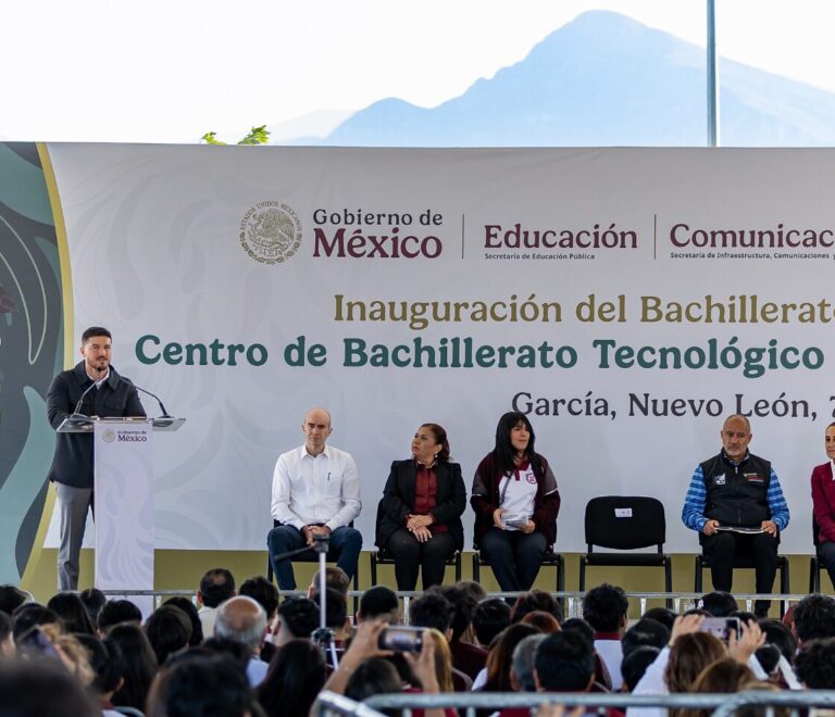 García, Nuevo León.- Al hacer la entrega del CBTIS 299 con la Presidenta de México, Claudia Sheinbaum,...