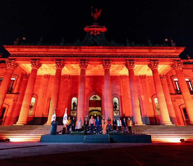 El Palacio de Gobierno se iluminó en color naranja que representa un futuro optimista y libre...