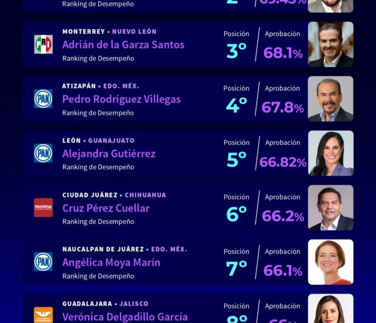 Los alcaldes de Mérida, Tijuana, Monterrey, Atizapán y León, son los 5 mejor evaluados del país...