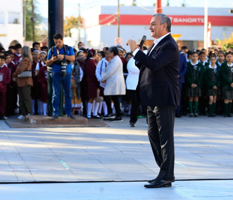 Ante alumnos de primaria y secundaria congregados en la Plaza Principal, el Gobierno de Guadalupe celebró...