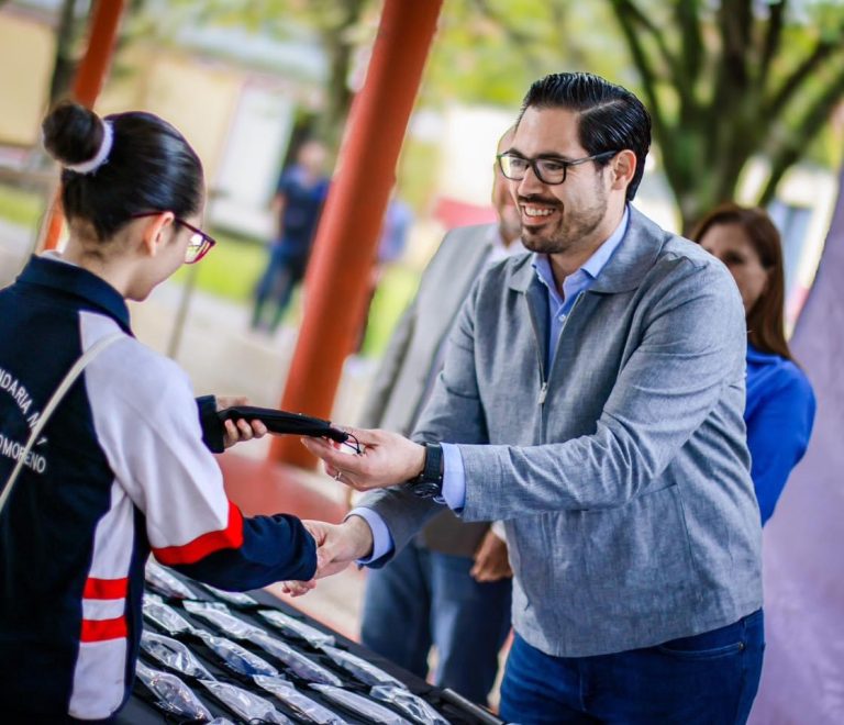 Estudiantes de la Secundaria Antonio Moreno recibieron de manos del Presidente Municipal de Santiago, David de...