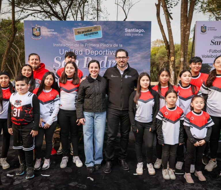 Con la colocación de la primera piedra, el Presidente Municipal de Santiago, David de la Peña...