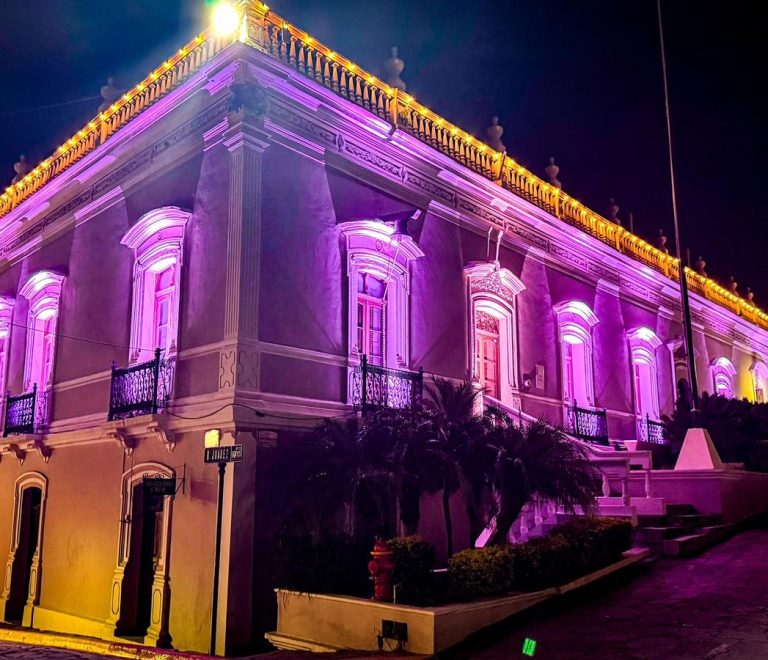 Iluminan de rosa la presidencia municipal de Santiago para conmemorar la lucha contra el cáncer de mama