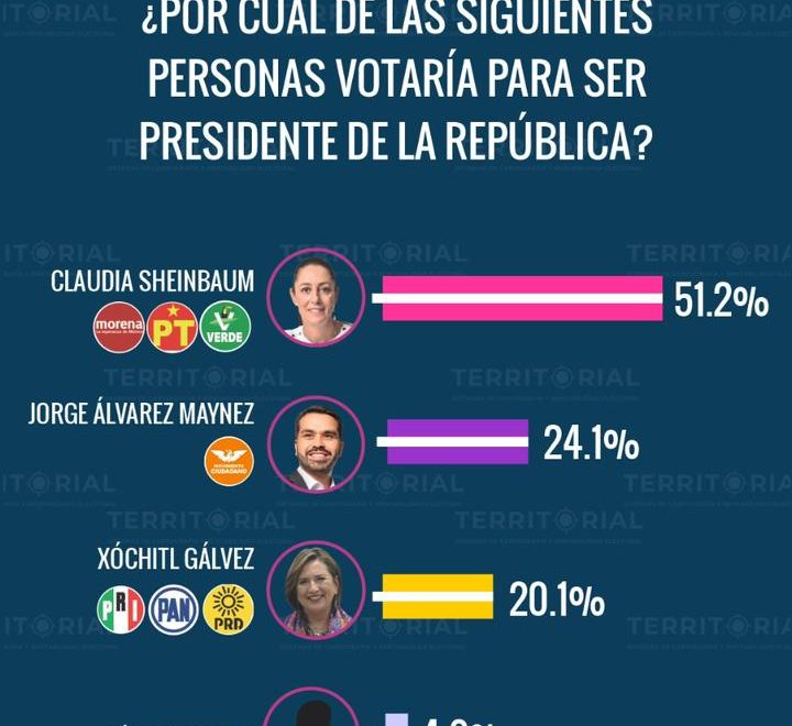 Territorial ubica a Álvarez Máynez por encima de Xóchitl Gálvez en carrera presidencial