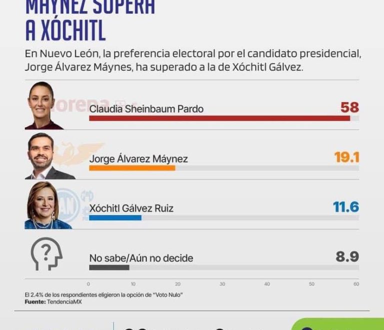 Según el último reporte de la encuestadora «TendenciaMX», la preferencia electoral en Nuevo León por el...