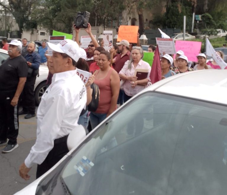 Más de 100 militantes fundadores de Morena en Nuevo León, protestaron afuera de las oficinas de enlace de Waldo...