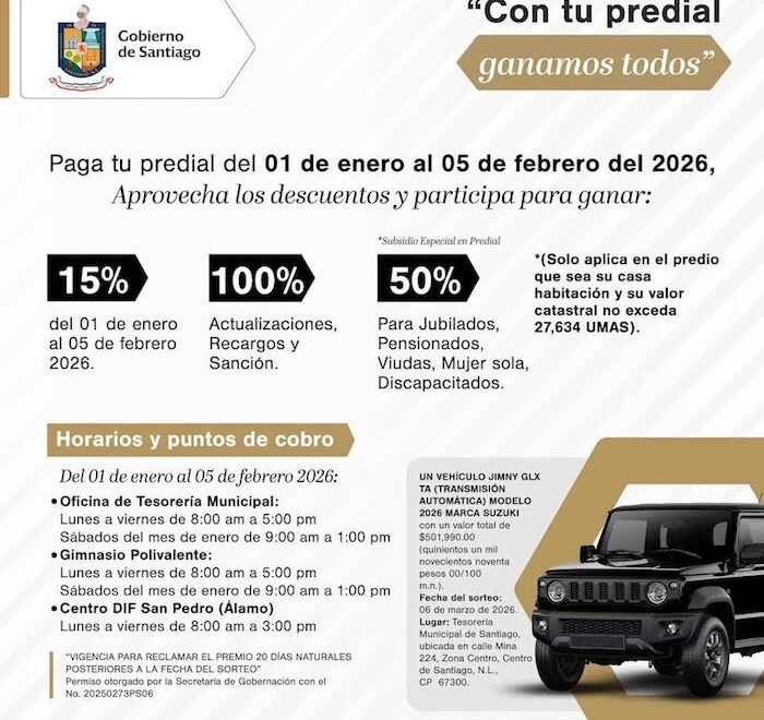 El Gobierno Municipal de Escobedo iniciará este 2 de enero el cobro del Impuesto Predial 2026...