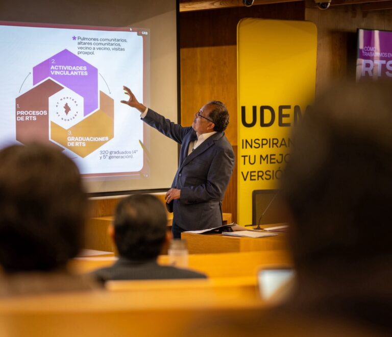 El alcalde de General Escobedo, Andrés Mijes, presentó en la Universidad de Monterrey el modelo de...