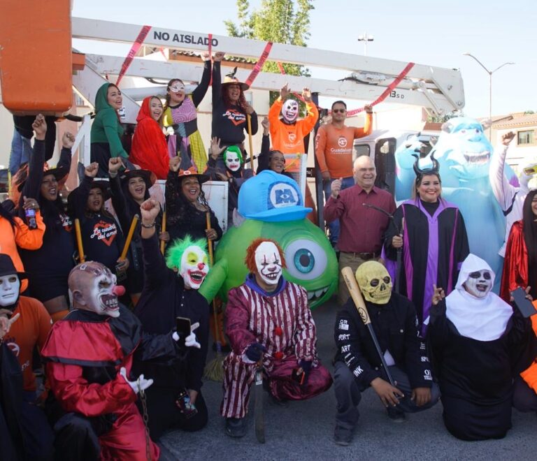 Ataviados con disfraces de monstros y personajes de terror, personal de limpia del Municipio de Guadalupe...