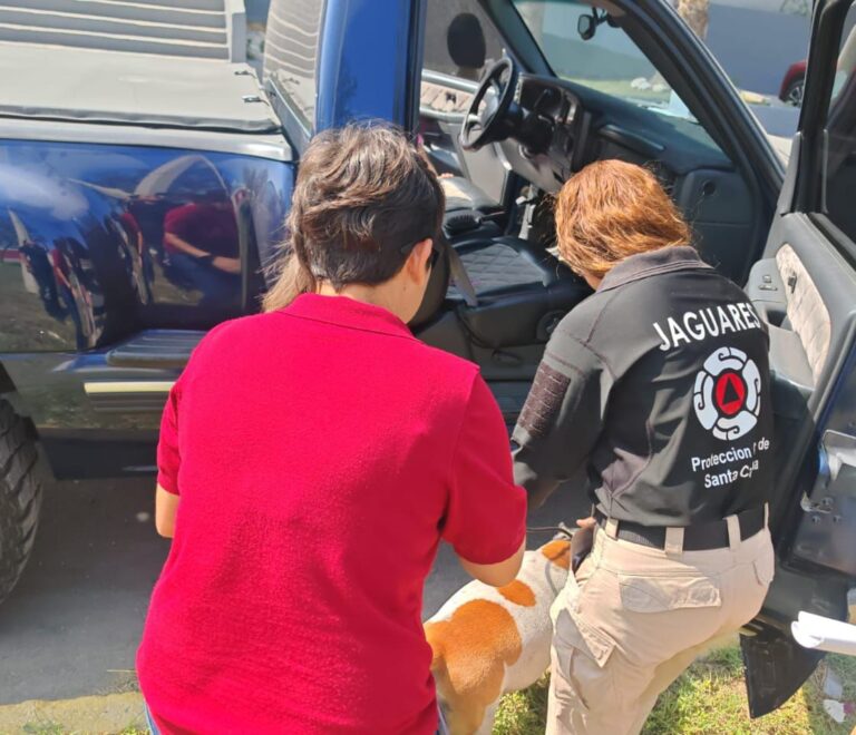 Elementos del Grupo Jaguares de Protección Civil de Santa Catarina rescataron a una perra durante las...