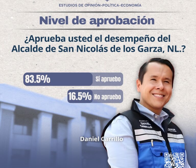 El alcalde de San Nicolás de los Garza, Daniel Carrillo, obtuvo un 83.5% de aprobación ciudadana por su desempeño...