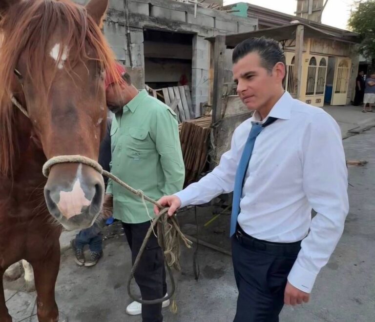 Monterrey, Nuevo León.– El Secretario General de Gobierno, Miguel Ángel Flores Serna, rescató a un caballo...