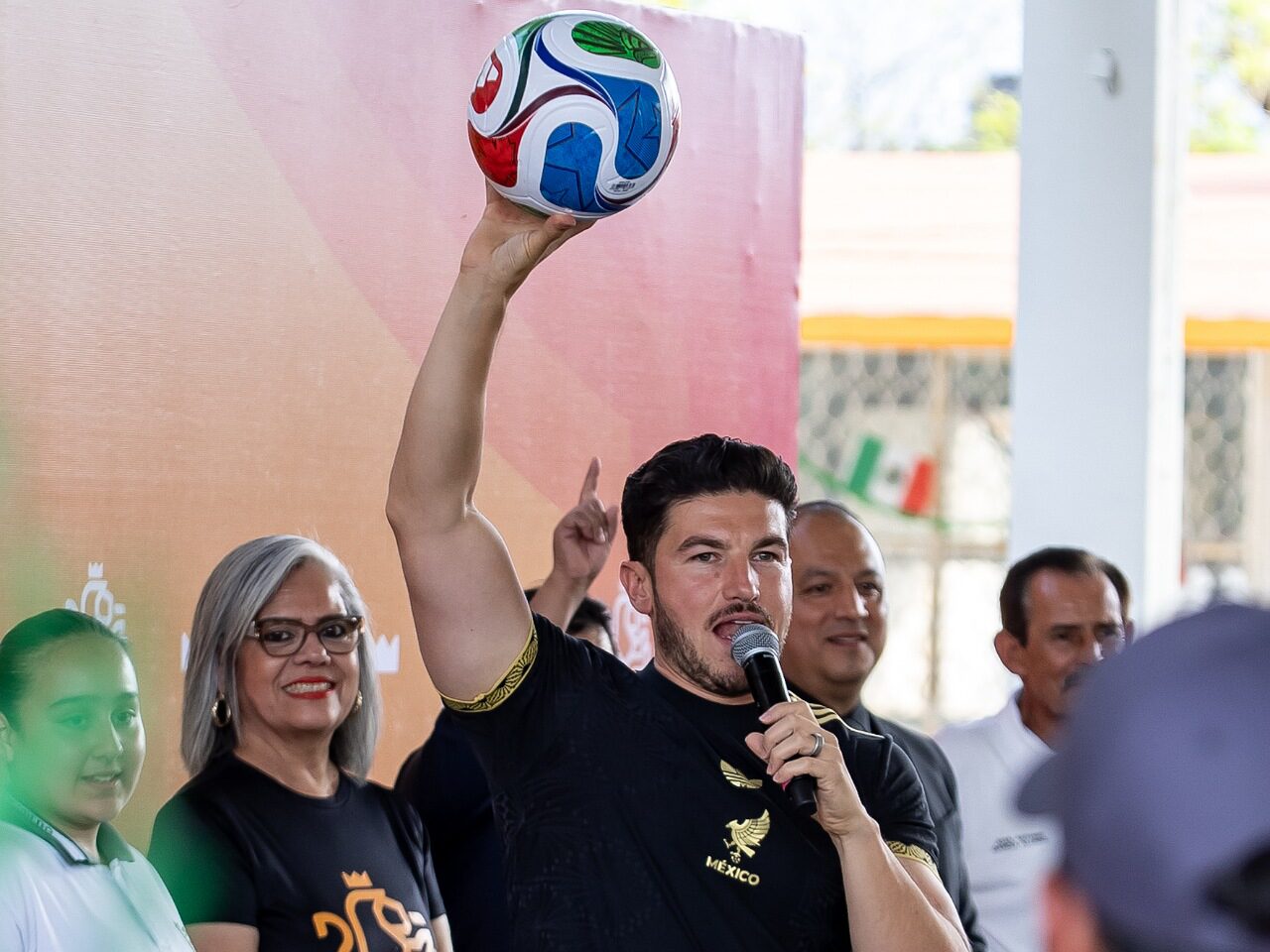 Guadalupe, Nuevo León.-En seguimiento a  inaugurar nuevas canchas en el Estado y con actividades del programa «Ponte Nuevo, Ponte Mundial», el Gobernador de Nuevo León, Samuel Alejandro García Sepúlveda jugó una cascarita por primera vez con el balón oficial del Mundial 2026.