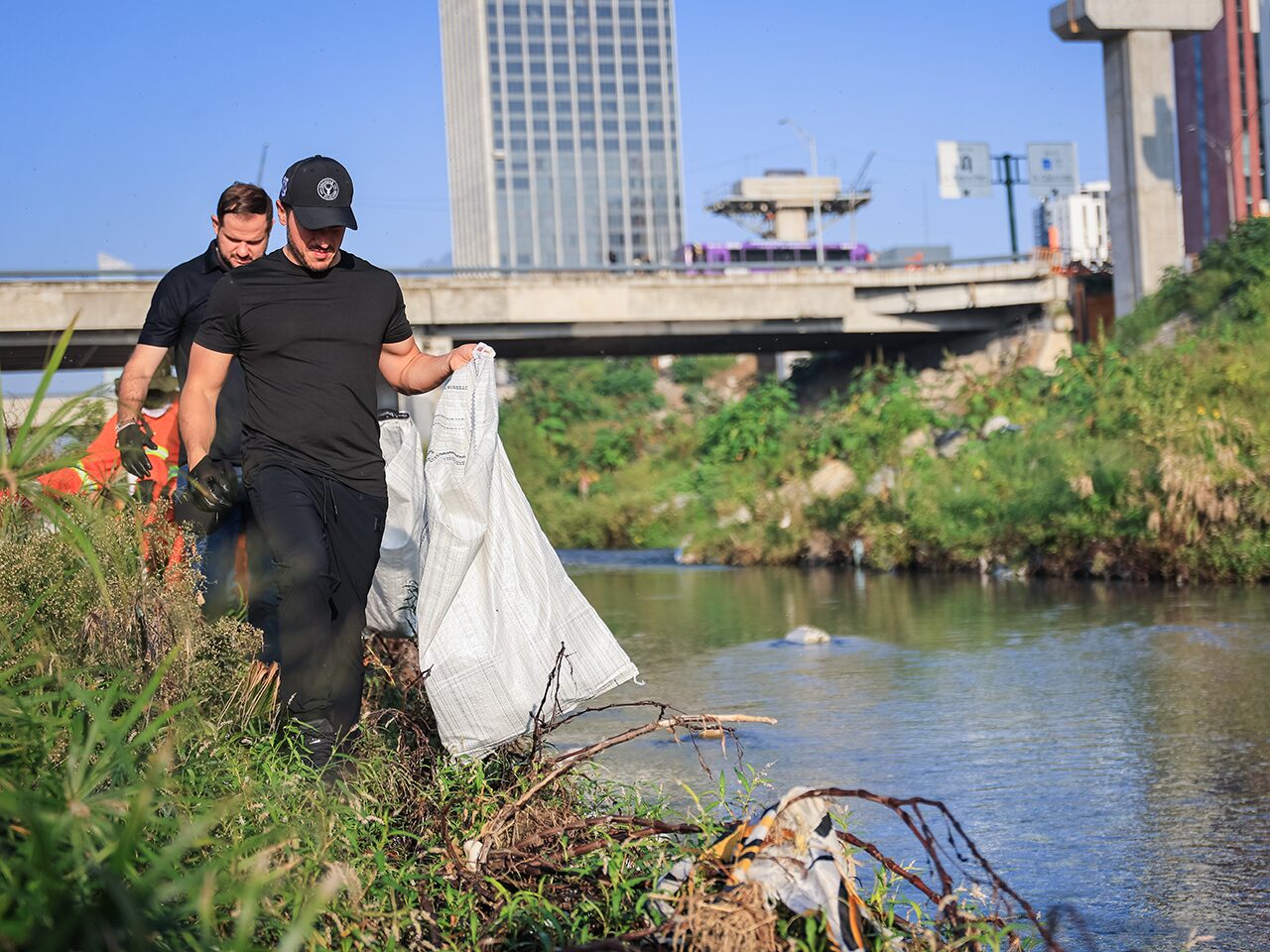 Al encabezar la Brigada de Limpieza número doce en el Río Santa Catarina, el Gobernador Samuel Alejandro García Sepúlveda señaló que habrá cero tolerancia contra quien tire basura en el cauce.