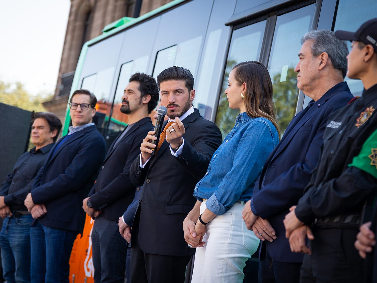 En la Explanada Cultural frente a Palacio de Gobierno y acompañado de la titular de AMAR a Nuevo León, Mariana Rodríguez Cantú, y del Secretario General de Gobierno, Miguel Ángel Flores Serna, el Mandatario estatal dijo que a cuatros años de la actual Administración estatal, los neoloneses cuentan con la movilidad que siempre debieron tener y se mueven más y mejor al contar con camiones suficientes.