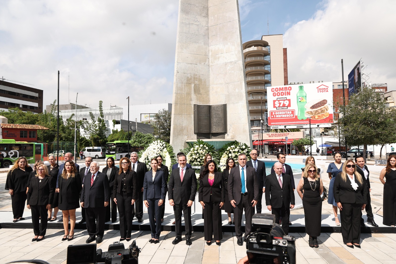 El Alcalde Adrián de la Garza encabezó este sábado una guardia de honor en el Obelisco de la ciudad para conmemorar el 429 aniversario de Monterrey.