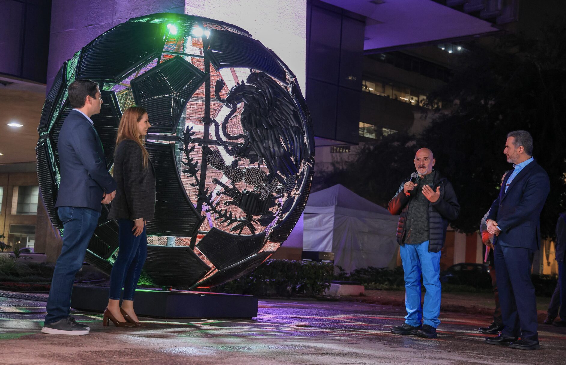La obra permanecerá en la Plaza Zaragoza durante el desarrollo del torneo mundialista y posteriormente será reubicada en un sitio definitivo.
