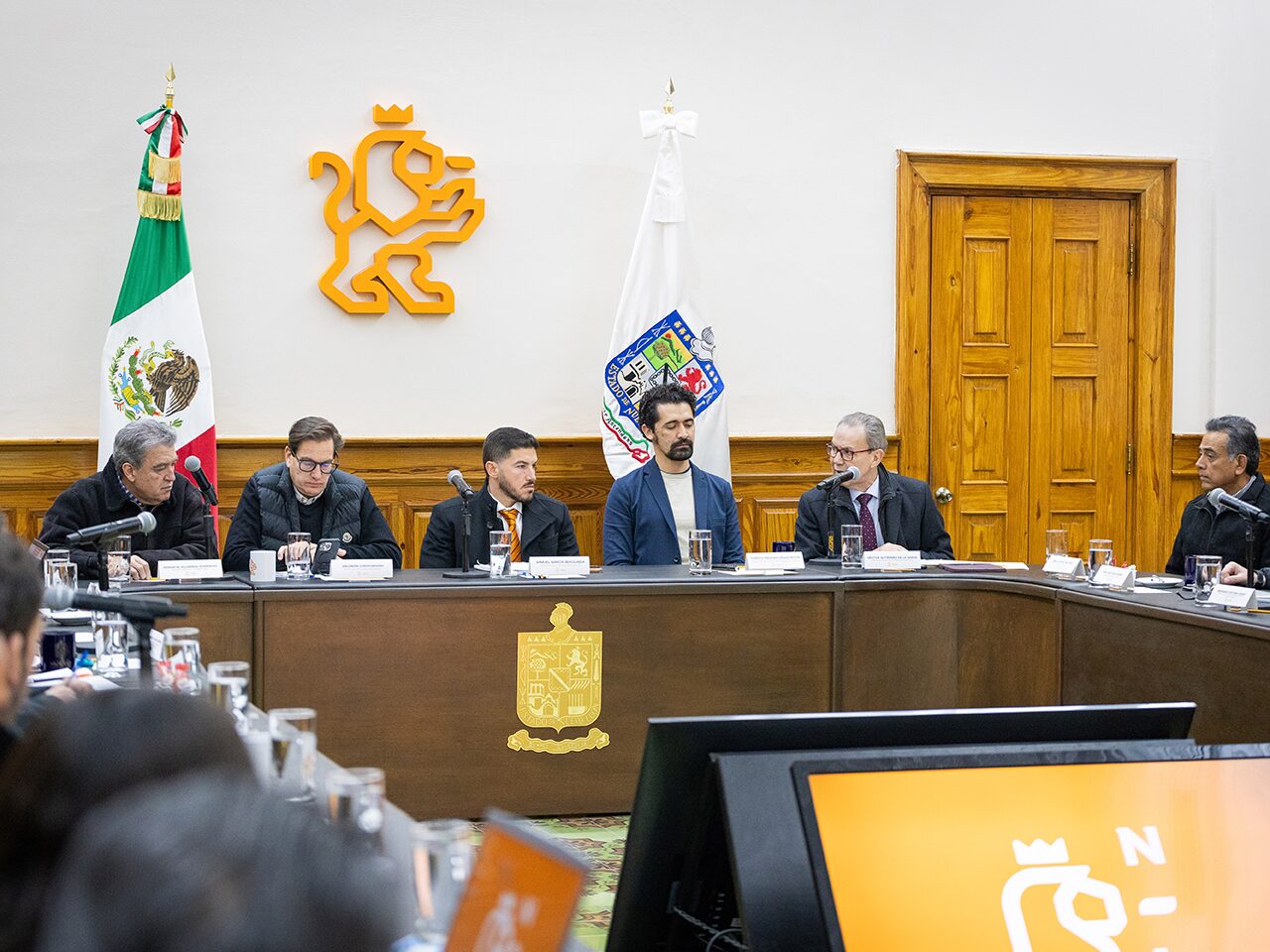 Durante la mesa estuvieron presentes delegaciones federales que intervienen en la construcción como CFE, Conagua, Semarnat, Migración, Gobernación en Nuevo León y las empresas que participan en la construcción.