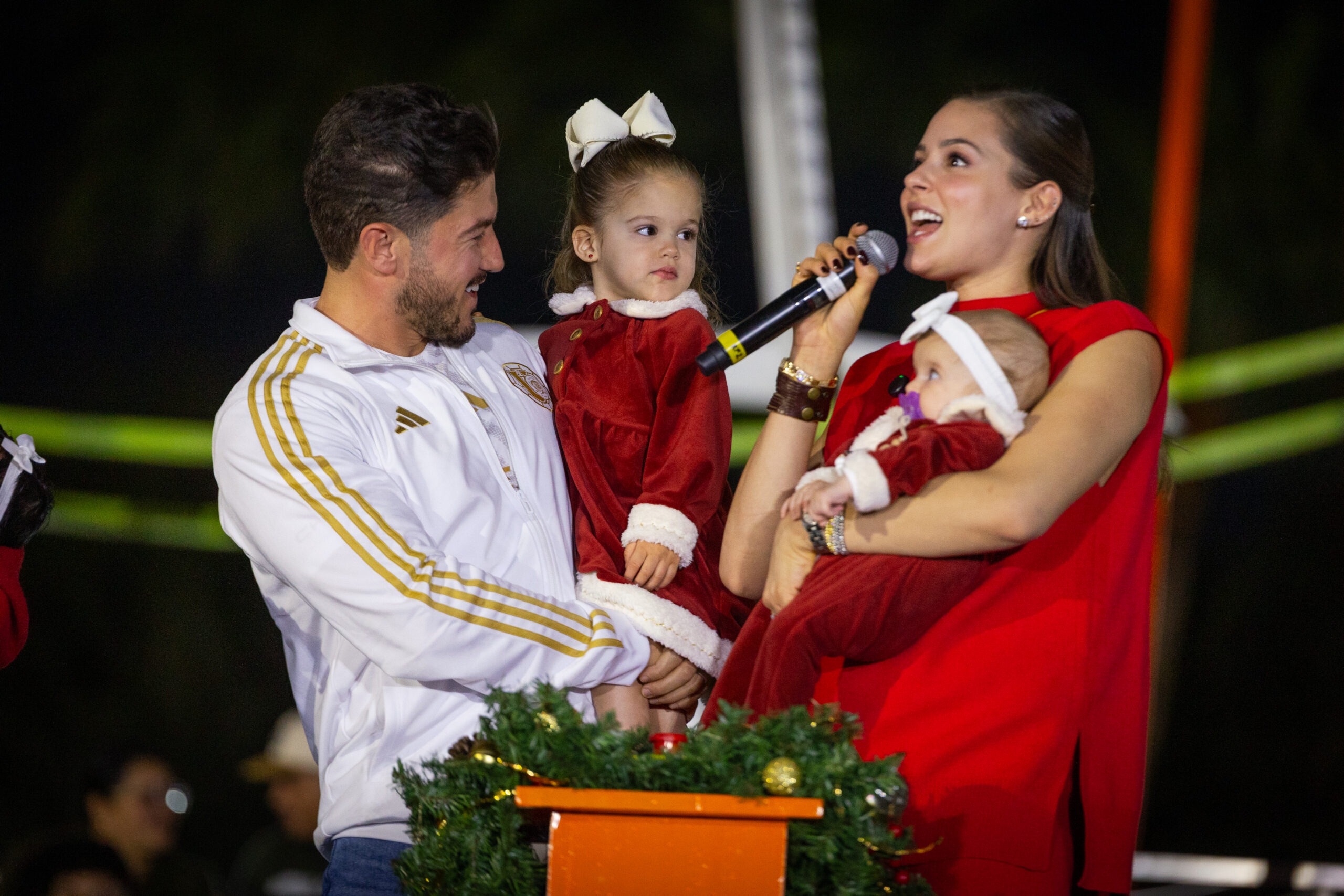 Instantes después, junto a sus hijas Mariel e Isabel, subieron a la rueda de la fortuna y recorrieron espacios temáticos como la Oficina Postal, la Casa de Santa, la Estación del Tren, el Túnel de Caramelos, el Carrusel, el Taller de Santa y el Mercado Nuevo León, acompañados por duendes que convivieron con las familias asistentes.