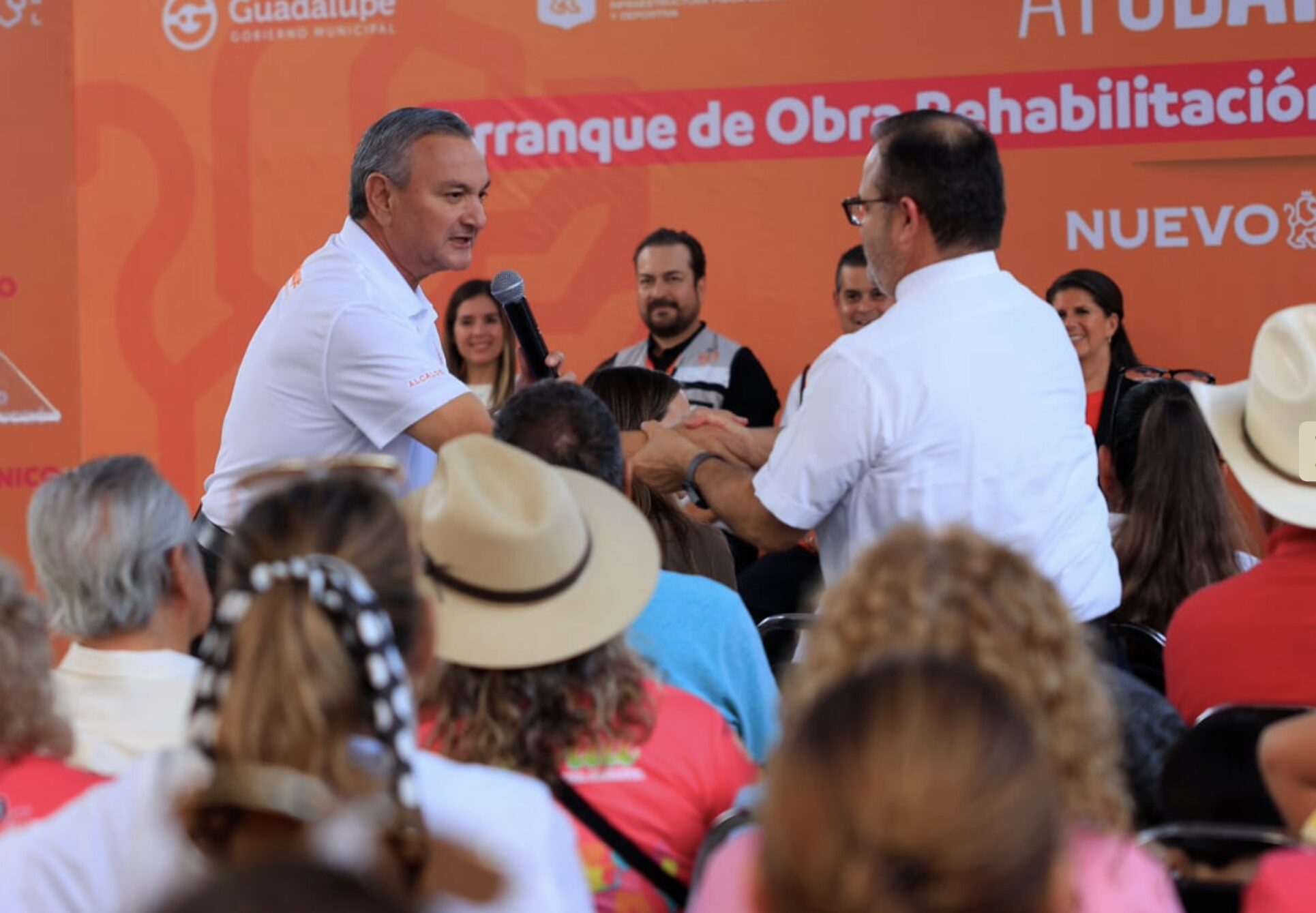 El alcalde de Guadalupe, Héctor García, junto a la secretaria de Igualdad e Inclusión de Nuevo León, Martha Herrera, recorrieron el sitio para supervisar el avance de las obras. “Hicimos equipo, Municipio y Estado, junto a la gente que se beneficiará con esta obra, y eso me satisface porque debemos presumir la grandeza de la gente trabajadora y generosa de Guadalupe, que se merece la rehabilitación del Centro Integral de Cuidados”, expresó el edil.