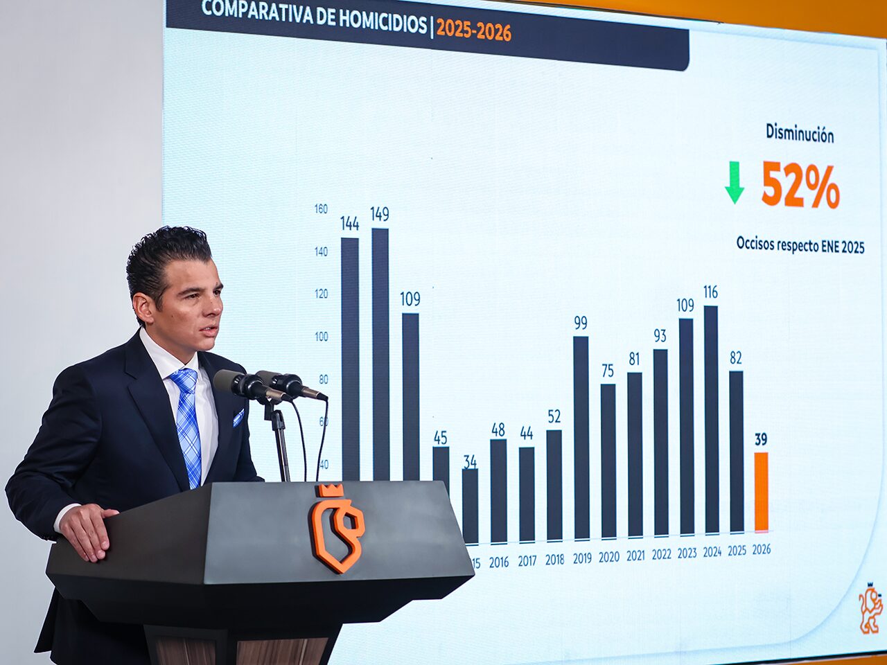 Precisó que, en comparación con 2024, el promedio diario de los homicidios ha disminuido 75 por ciento, y un 40 por ciento respecto al año anterior.