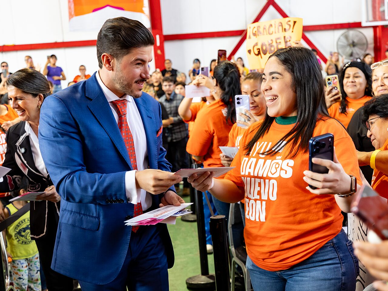 Apodaca, Nuevo León.- Al llevar la entrega de tarjetas «Ayudamos» al municipio de Apodaca, el Gobernador de Nuevo León, Samuel Alejandro García Sepúlveda destacó que Nuevo León es el Estado que