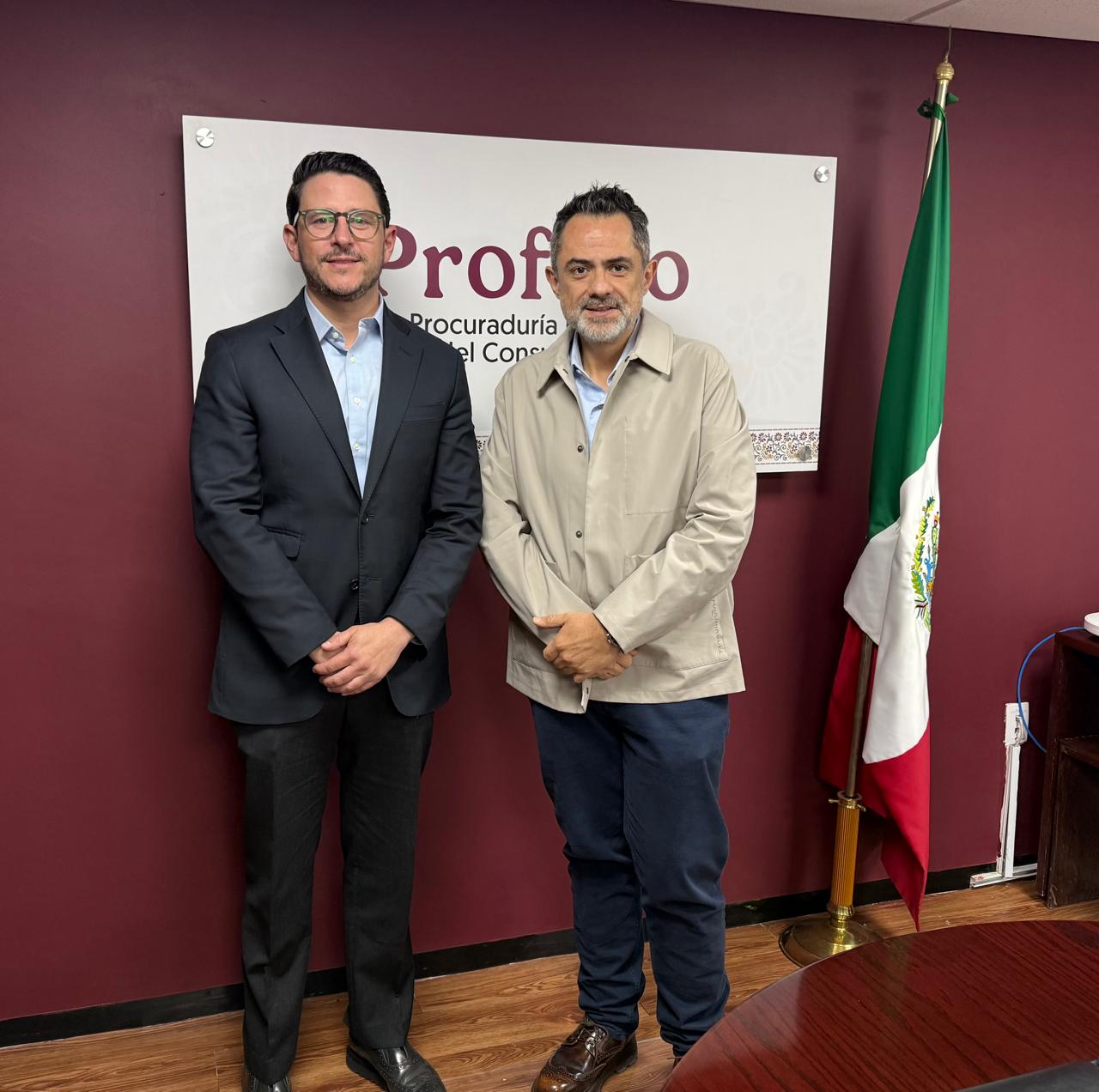 Oliverio Tijerina sostuvo una reunión de trabajo con el Procurador Federal del Consumidor, Iván Escalante Ruiz, para dar seguimiento a temas relacionados con la protección de la economía familiar.