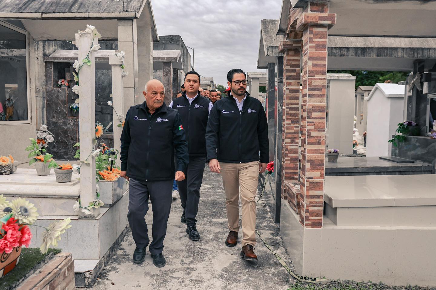 Con el objetivo de garantizar espacios seguros y en buenas condiciones para las familias que acudirán a recordar a sus seres queridos, el alcalde David de la Peña Marroquín realizó una supervisión en los panteones municipales previo a la celebración del Día de Muertos.