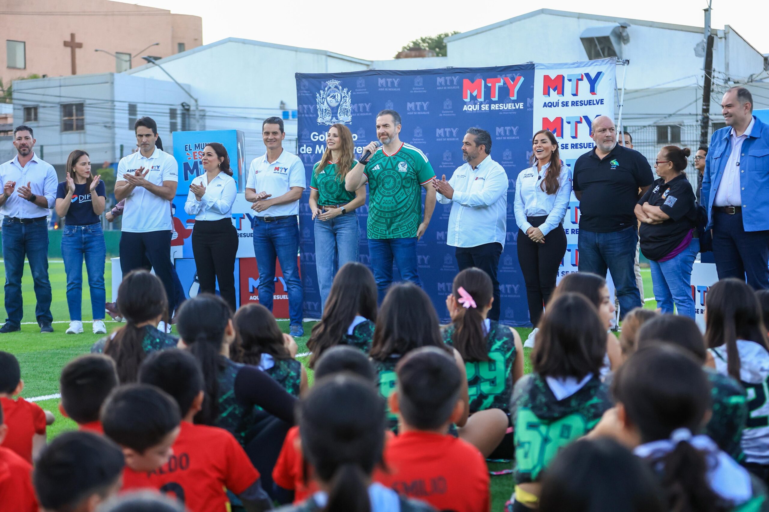 Para beneficiar a la juventud de Monterrey con más y mejores espacios deportivos y de convivencia, y en el marco de la Copa Mundial de FIFA, el Gobierno de la ciudad, a través de la Secretaría de Servicios Públicos rehabilitó una cancha de fútbol 9 en la colonia Valle de Infonavit.