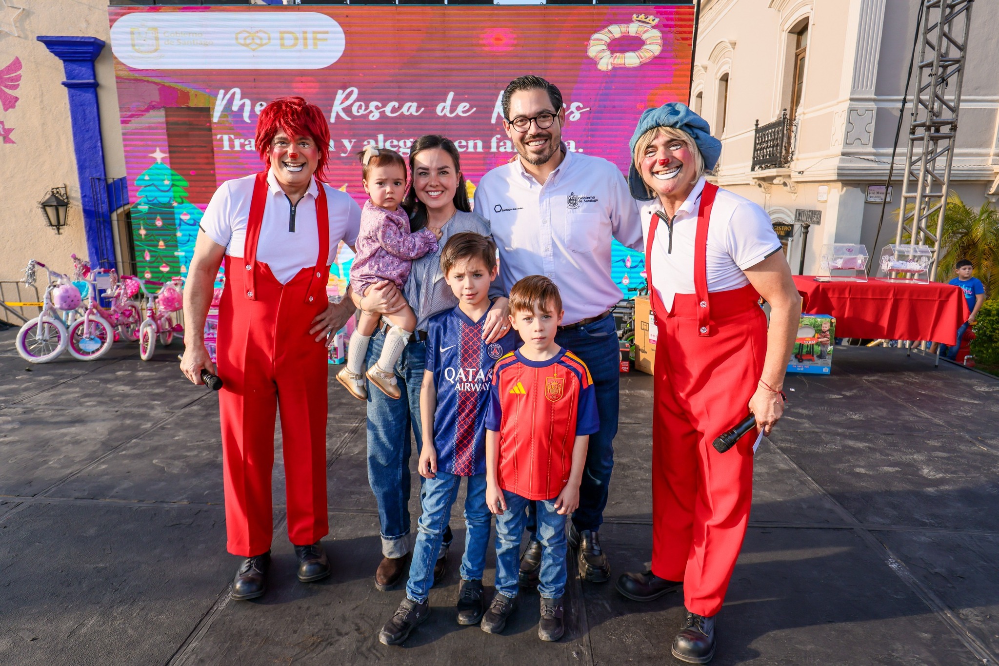 Entre música, risas y un ambiente de convivencia familiar, el alcalde de Santiago, David de la Peña Marroquín, encabezó la celebración del Día de Reyes con la tradicional Mega Rosca, acompañado por su esposa Olga Amalia Villalón Toba, presidenta del DIF municipal, así como por sus hijos David, Pablo y Maya.