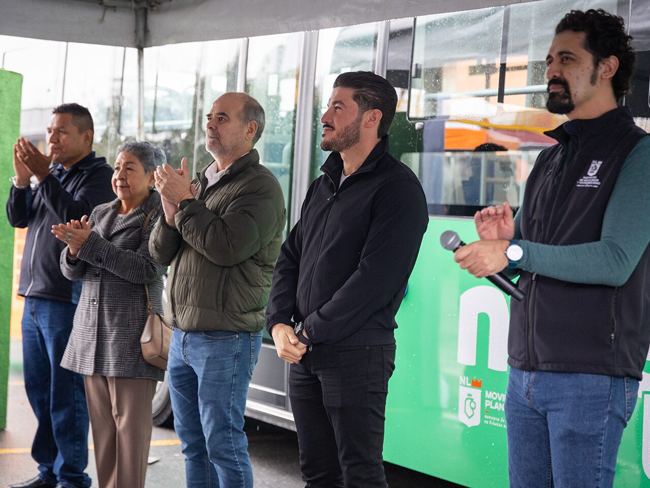 Acompañado del Director General del Sistema de Transporte Colectivo Metrorrey y Encargado del Despacho de la Dirección General del IMA, Abraham Vargas Molina, el Mandatario estatal destacó que Nuevo León es la única entidad que está renovando todos los camiones, siendo ejemplo nacional e internacional.