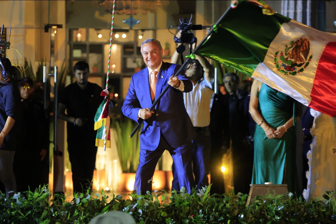 Al grito de ¡Viva México! y en un ambiente de algarabía, luces y colores, con un show de drones, el edil celebró el acontecimiento histórico, con el cual hace 215 años se logró la emancipación del país.