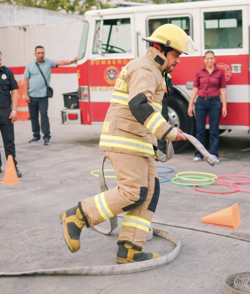 El Alcalde de Santa Catarina, Jesús Nava Rivera, dejó por un momento el escritorio para vestirse con casco, chamarra y atender incendios, al participar en la convivencia familiar con los elementos de Bomberos de Nuevo León, de Estación 4 La Fama, ubicada en el municipio.
